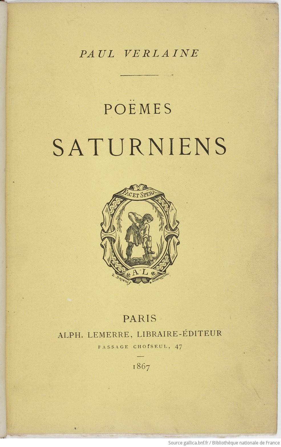 - Poèmes saturniens, Paul Verlaine (Paris, Alphone Lemerre, 1866)